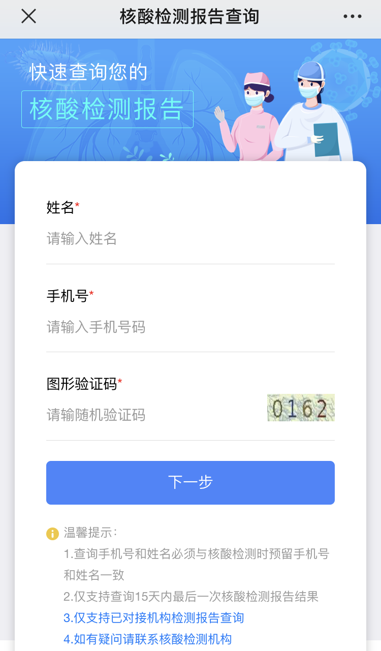 ④進行短信驗證后,即可查詢15天內(nèi)(從5月11日起)的核酸檢測報告