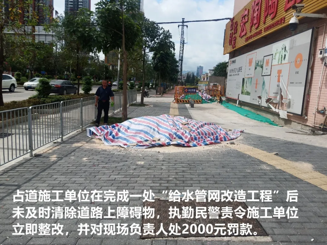 龍崗**有限公司橫崗分公司擅自在高峰期占用道路施工,執(zhí)勤民警責令立即整改、撤離現(xiàn)場。