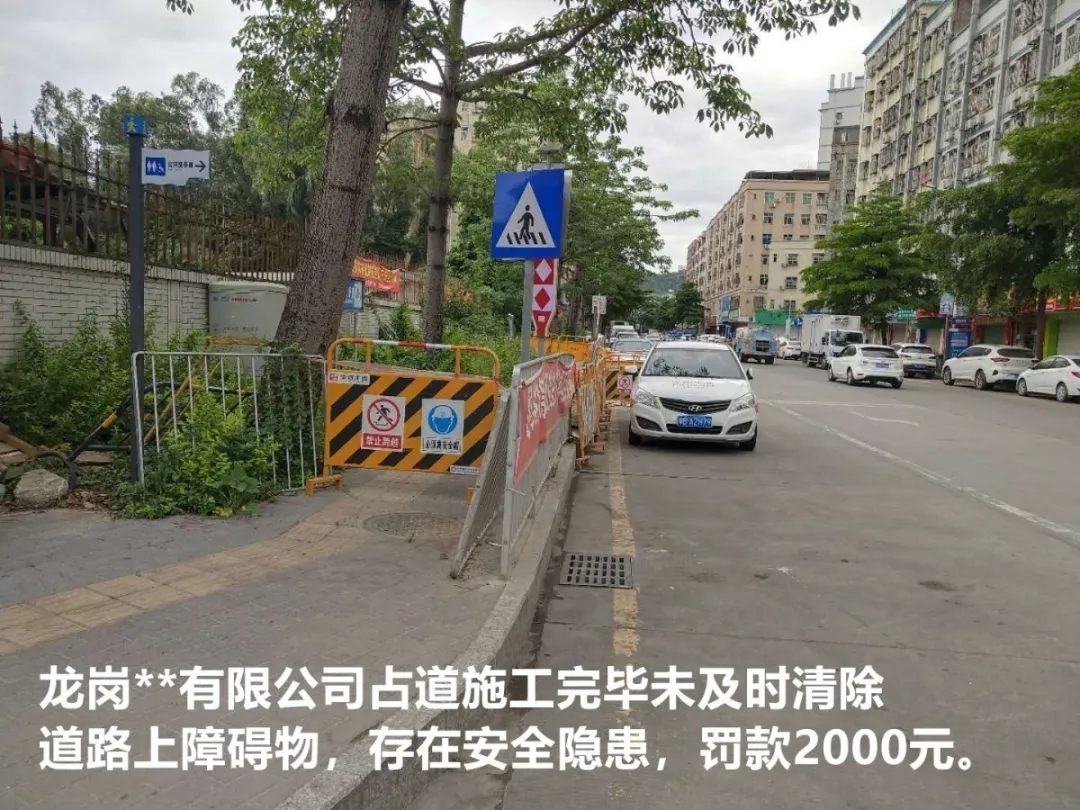 對該施工單位在橫坪連接線路段占道施工導致人行道不連貫、機非沖突,存在較大交通安全隱患的行為,龍崗交警依法處罰10000元并責令立即整改。