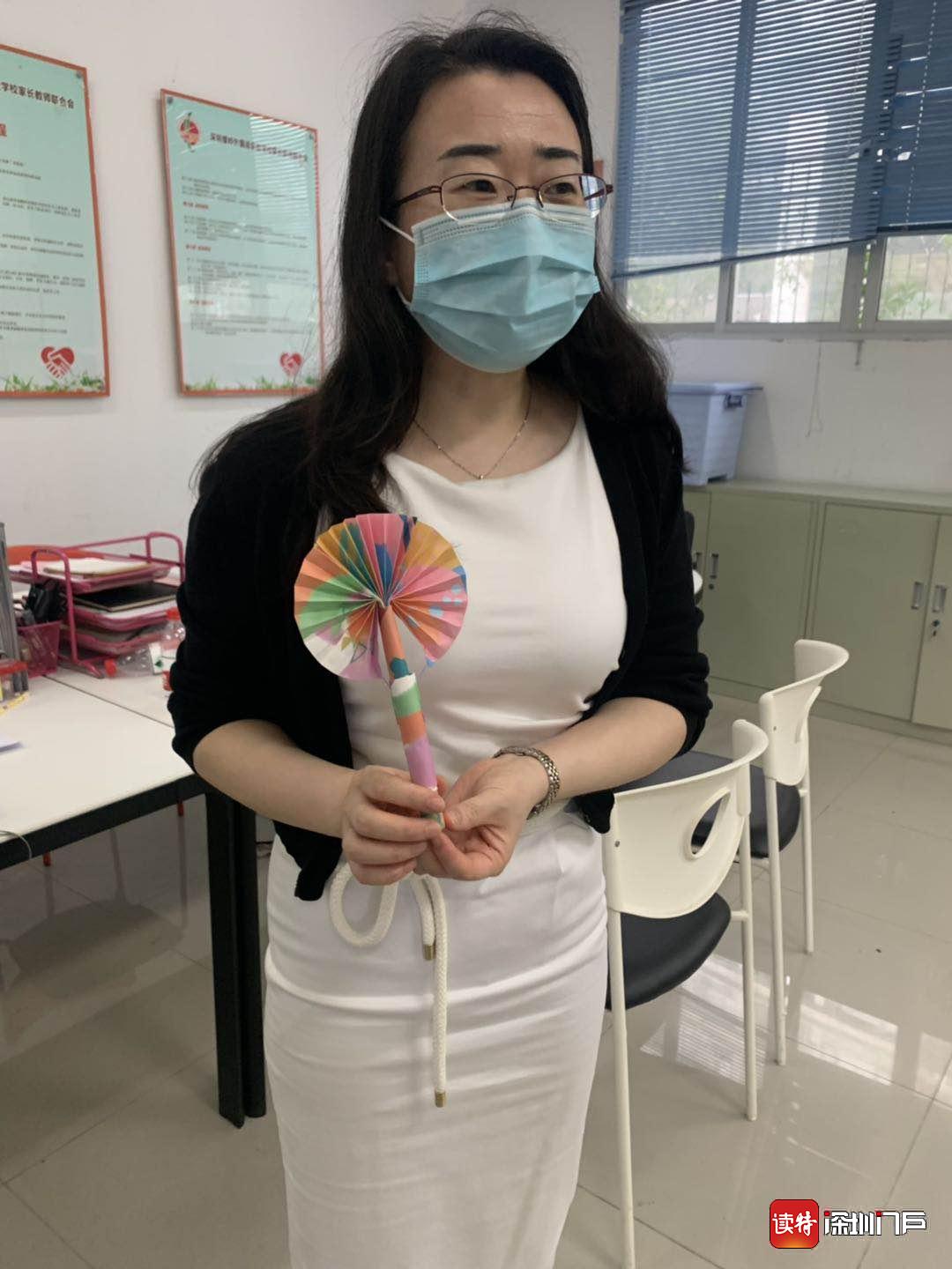 螺嶺外國(guó)語(yǔ)實(shí)驗(yàn)學(xué)校三年級(jí)(12)班的學(xué)生林子軒專門(mén)為老師做了小折扇,一進(jìn)校門(mén)就送到了老師手里,怕老師熱。