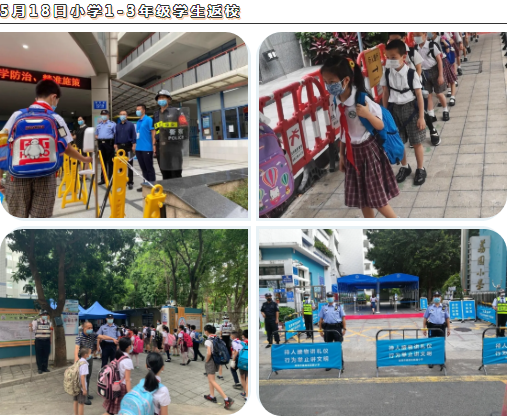 見圳客戶端·深圳新聞網(wǎng)2020年5月18日訊 5月18日,深圳市福田區(qū)迎來第三批返校師生,來自全區(qū)各小學1—3年級近6萬名小學生正式按下“復課鍵”。至此,福田區(qū)中小學已全面復課。據(jù)統(tǒng)計,5月18日,福田公安分局出動警力885人次,護學崗力量963人次,保障返校秩序有效安全。