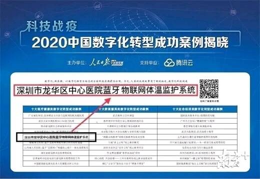 日前,《人民日報》公布“科技戰(zhàn)疫——2020中國數(shù)字化轉(zhuǎn)型成功案例”,龍華區(qū)中心醫(yī)院的藍牙物聯(lián)網(wǎng)體溫監(jiān)護系統(tǒng)入榜,躋身于醫(yī)療健康類數(shù)字化轉(zhuǎn)型成功案例。