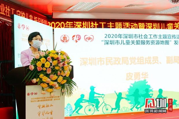 深圳市民政局副局長皮勇華在2020年深圳市社會工作主題宣傳活動中致辭。