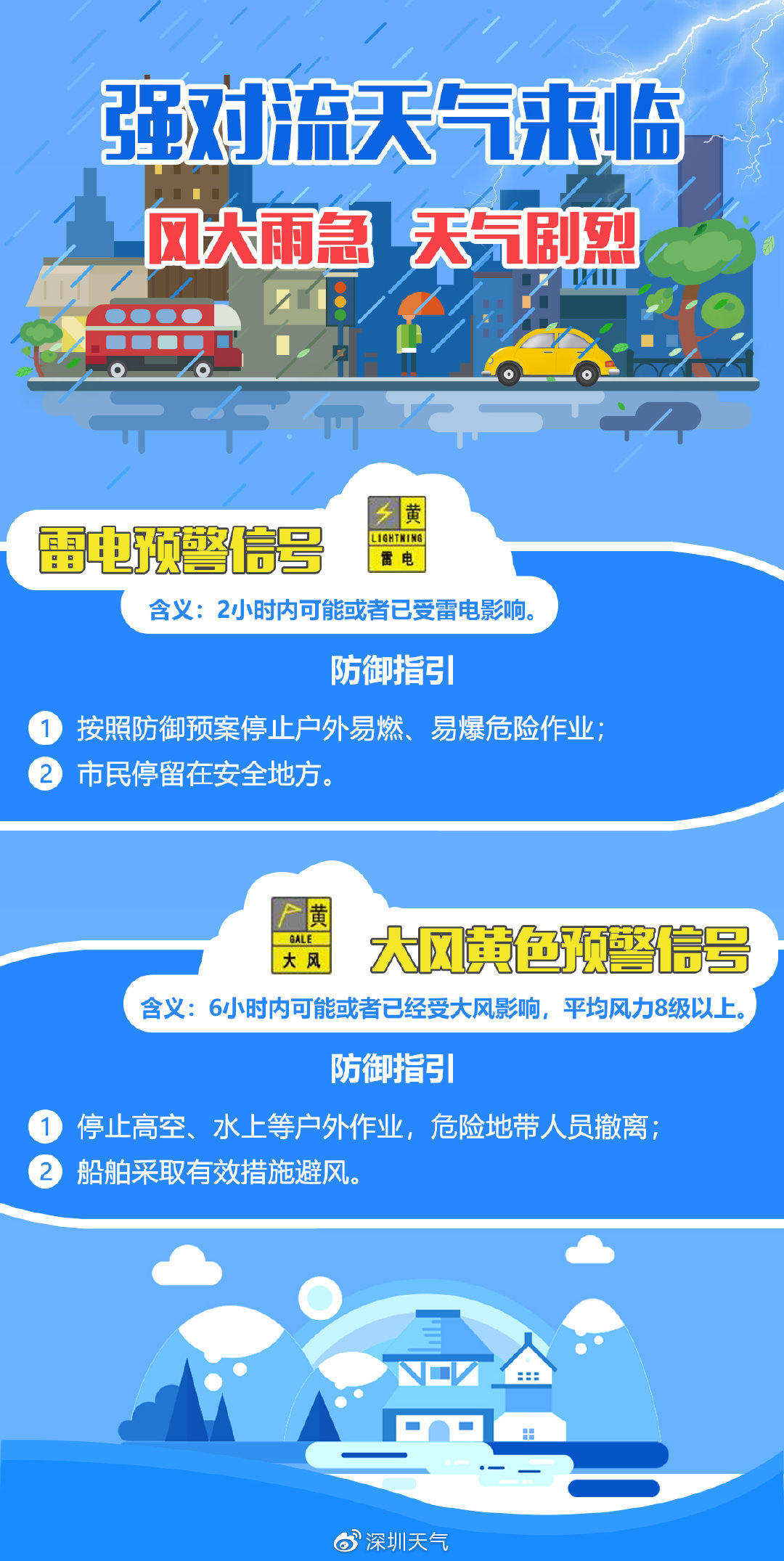 據(jù)深圳天氣微博消息,過去1小時,大鵬新區(qū)和東部海區(qū)累計雨量已達(dá)暴雨,預(yù)計強降雨還將持續(xù)2-3小時,全市進(jìn)入暴雨防御狀態(tài),請注意防御。中小學(xué)、幼兒園可視情況推遲上學(xué)。同時暴雨黃色分區(qū)、大風(fēng)黃色、雷電預(yù)警正在生效中,請注意做好防御。