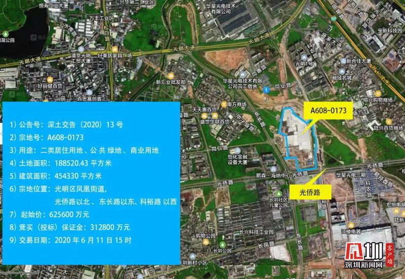 四宗地中,光明A608-0173宗地位于光明區(qū)鳳凰街道光僑路以北、東長路以東、科裕路以西,土地用途為二類居住用地、公共綠地、商業(yè)用地,土地面積為18.85萬平方米,建筑面積為45.43萬平方米。該地建設(shè)住宅類型為公共租賃住房、只租不售的人才住房和普通商品房,初始配建公共租賃住房和只租不售的人才住房各5萬平方米。項目建成后,普通商品住房最高銷售均價為4.75萬元/平方米(不含室內(nèi)裝修)。