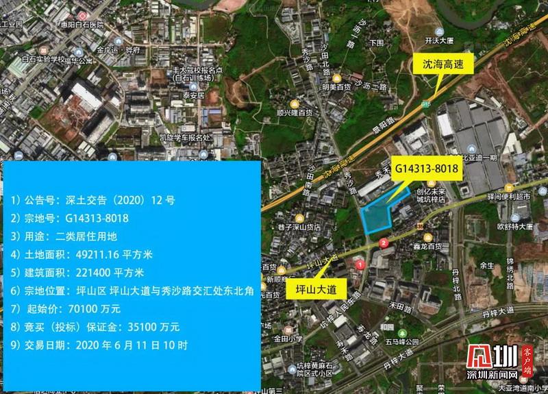坪山G14313-8018宗地位于坪山區(qū)坪山大道與秀沙路交匯處東北角,土地用途為二類居住用地,起始價為7.01億元,土地面積為4.92萬平方米,建筑面積為22.14萬平方米。其建設(shè)住宅類型為出售的人才住房和出售的安居型商品房,其中出售的人才住房建筑面積為7.13萬平方米,出售的安居型商品房建筑面積為13.25萬平方米。項目建成后,宗地出售的人才住房銷售基準(zhǔn)售價不高于1.98萬元/平方米,最高售價不高于2.08萬元/平方米;安居型商品房基準(zhǔn)售價不高于1.65萬元/平方米,最高售價不高于1.73萬元/平方米。