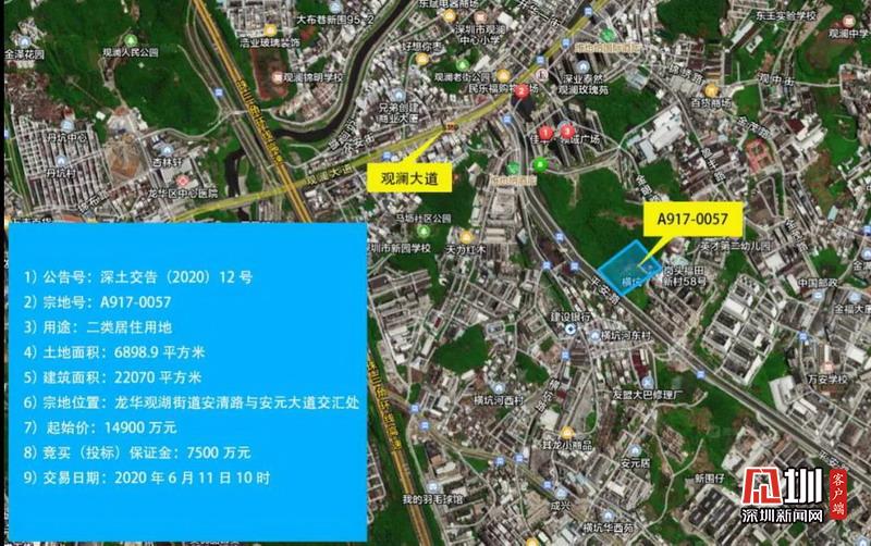 龍華A917-0057宗地位于龍華區(qū)觀湖街道安清路與安元大道交匯處,土地用途為二類居住用地,起始價為1.49億元,土地面積為6898.9平方米,建筑面積為2.21萬平方米。該宗地建設(shè)住宅類型為出售的人才住房,項目建成后出售的人才住房銷售基準(zhǔn)售價不高于2.97萬元/平方米,最高售價不高于3.12萬元/平方米。