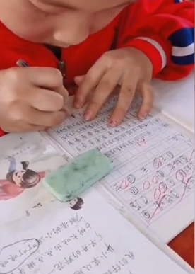 前兩天,小編就看到了這個(gè)聽寫前,虔誠(chéng)地將知識(shí)“捧進(jìn)”腦子的小盆友: