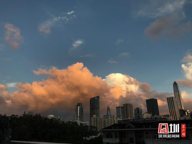 下午19點(diǎn),夕陽(yáng)將云朵染成橙色。