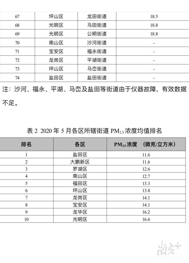 南方網(wǎng)2020年6月15日訊 6月15日,深圳市生態(tài)環(huán)境局向社會通報了全市74個街道5月份PM2.5濃度排名情況。海山、福保、桃源、南澳、葵涌、蓮塘、石巖、西鄉(xiāng)、蓮花和黃貝等街道名列前十。