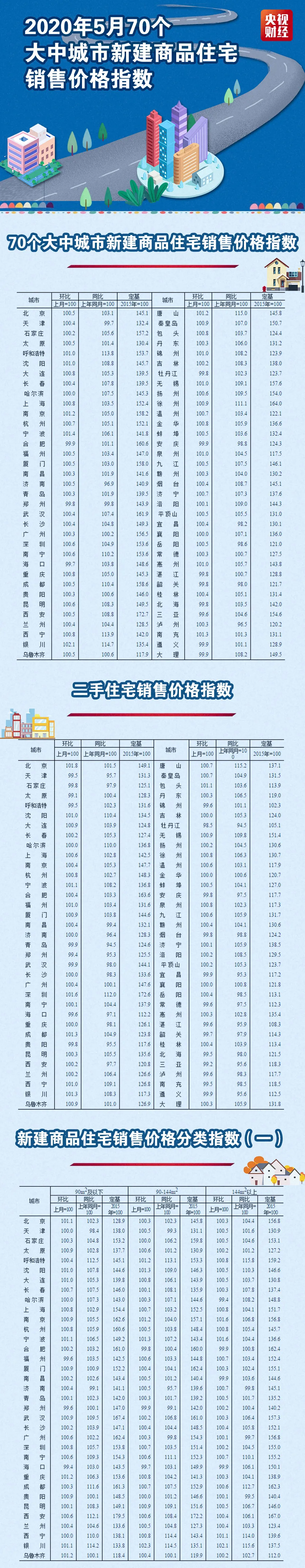 央視財(cái)經(jīng)2020年6月15日訊 國家統(tǒng)計(jì)局今天發(fā)布的5月份70大中城市新建商品住宅銷售價(jià)格顯示:一二三線城市新建商品住宅銷售價(jià)格環(huán)比漲幅均略有擴(kuò)大,二手住宅漲幅與上月相同或微擴(kuò)。環(huán)比看,銀川漲幅2.1%領(lǐng)跑。