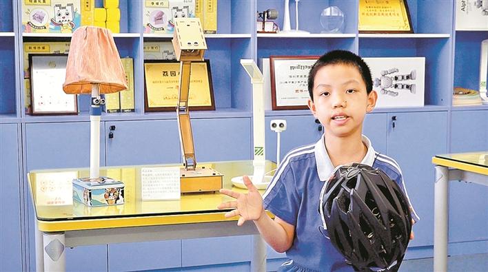 在周奕辰的爸爸看來,在發(fā)明創(chuàng)造的過程也開拓了孩子的思維能力,鍛煉了協(xié)作、溝通、表達等能力。如今,周奕辰是學(xué)校少先隊的大隊委,是紅領(lǐng)巾廣播站播音員,還加入學(xué)校創(chuàng)客社團、美術(shù)社團、管樂團學(xué)習(xí),還經(jīng)常參加各類美術(shù)、管樂比賽,不但成績優(yōu)秀,綜合素養(yǎng)也全面發(fā)展。