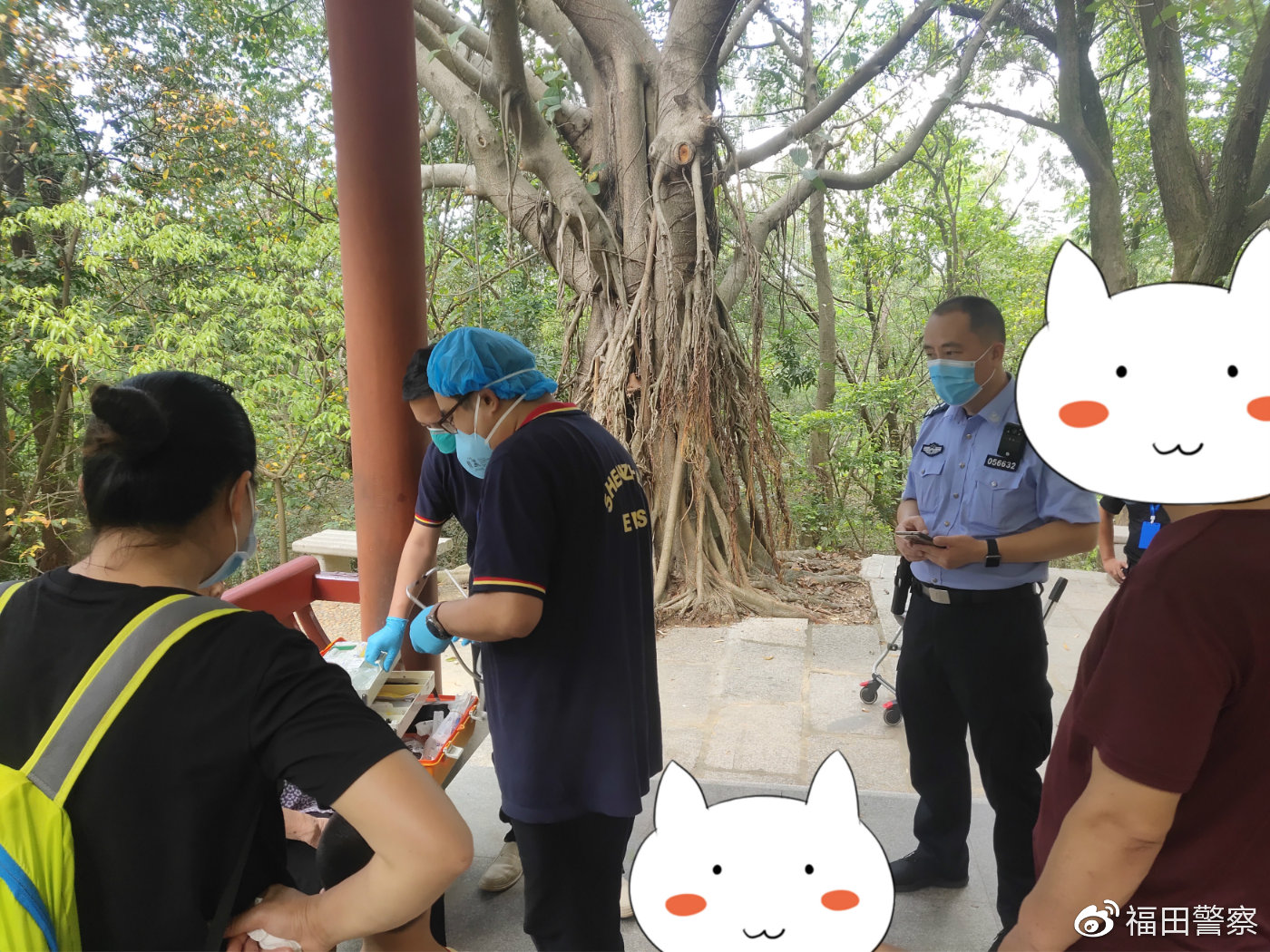 13時(shí)許,接派出所前臺(tái)指令,報(bào)稱一老人身體不適請(qǐng)求幫助后,民警立即趕到現(xiàn)場(chǎng),協(xié)助120醫(yī)務(wù)人員進(jìn)行檢查。檢查完畢后,民警為老人遞上一杯水,并在確認(rèn)老人身體無礙后,將其護(hù)送下山。