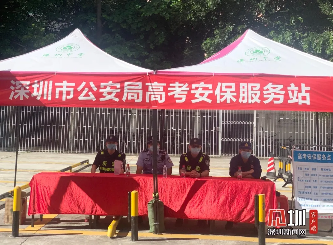 同時,在深圳中學(xué)考點外,市公安局還設(shè)立了高考安保服務(wù)站。