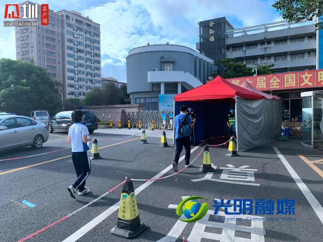 早上七點十五分,記者來到光明區(qū)高級中學(xué)考點,學(xué)生已經(jīng)開始有序走入考場。