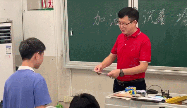 七點五十分,高三年級老師叫同學(xué)名字挨個上臺發(fā)放準(zhǔn)考證,提醒學(xué)生考試注意技巧,細(xì)心規(guī)范,按照平時周測的情況發(fā)揮就可以了。祝大家旗開得勝,馬到成功。