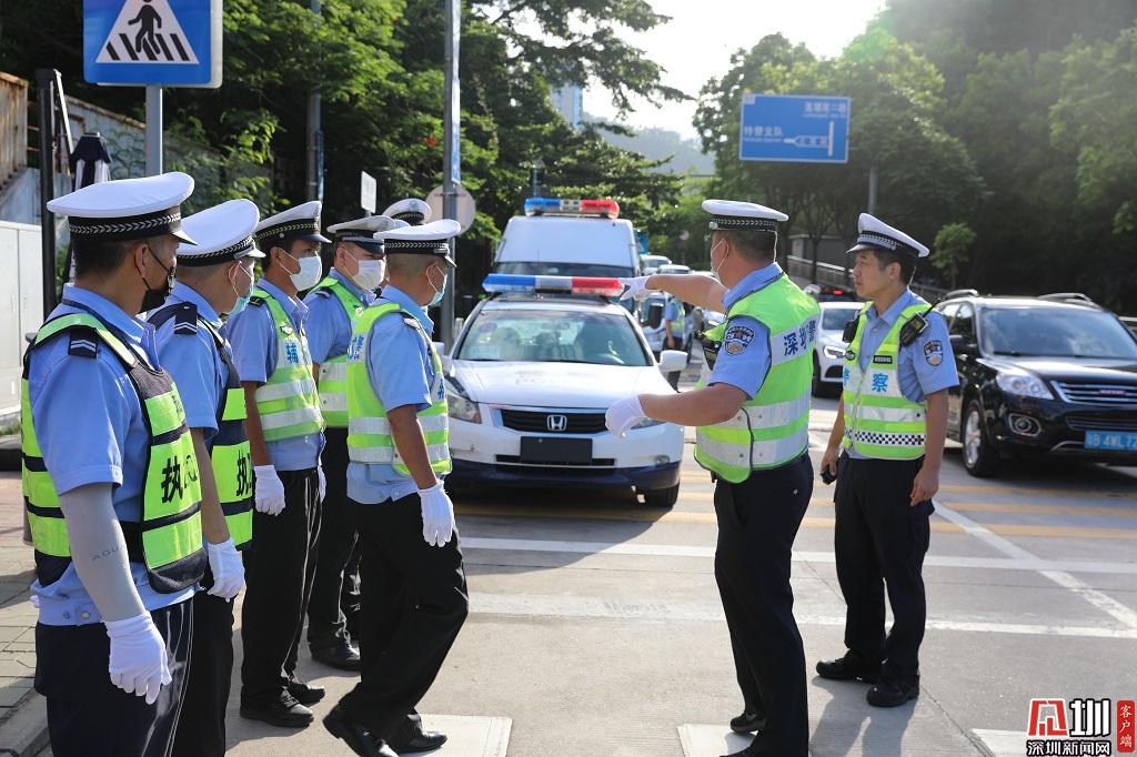 考點外,深圳公安正在討論工作部署,確??荚図樌M(jìn)行。