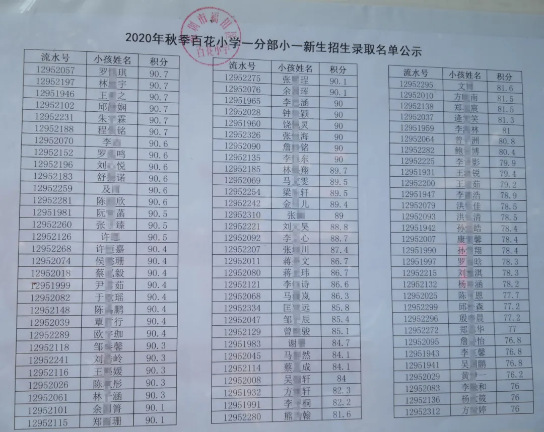 2020年福田區(qū)公辦小一新生錄取名單來(lái)了,部分學(xué)校最低錄取積分曝光