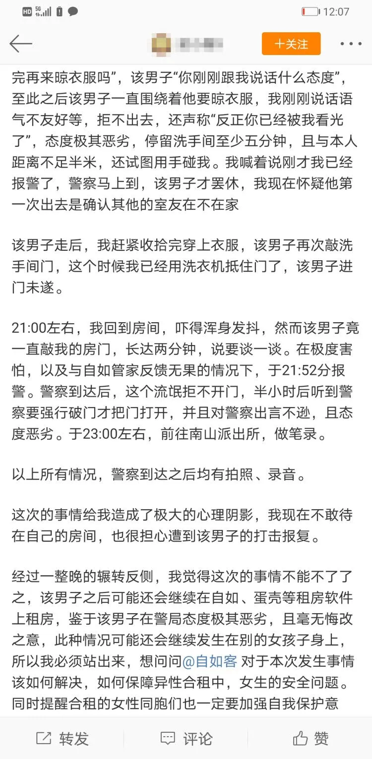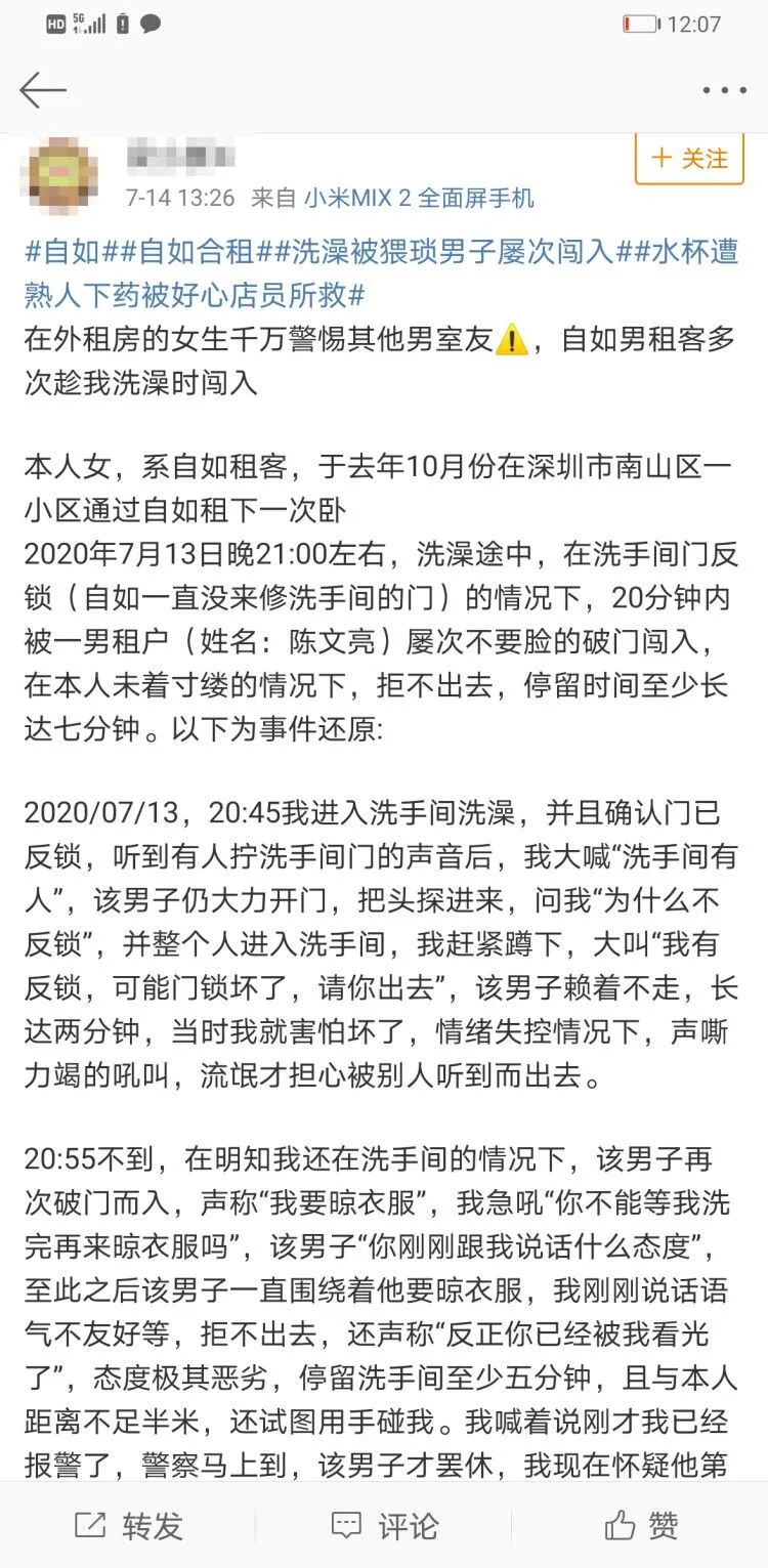 南山警方通報(bào)“女生合租房衛(wèi)生間洗浴被同租男舍友闖入”事件結(jié)果