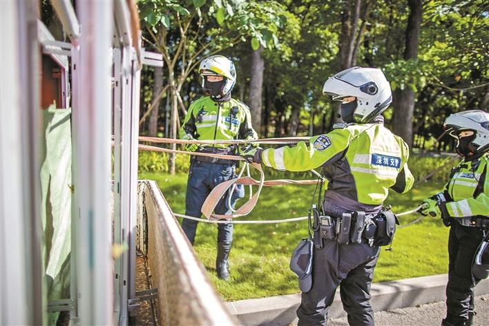 見圳客戶端·深圳新聞網(wǎng)2020年7月20日訊(晶報記者 陸洋/文 賴?yán)?圖)盛夏的鵬城,驕陽似火。轟鳴的馬達(dá)、300多斤的中型摩托車、20多斤的制服與頭盔……這是深圳交警鐵騎隊員日常工作里的基本裝備。