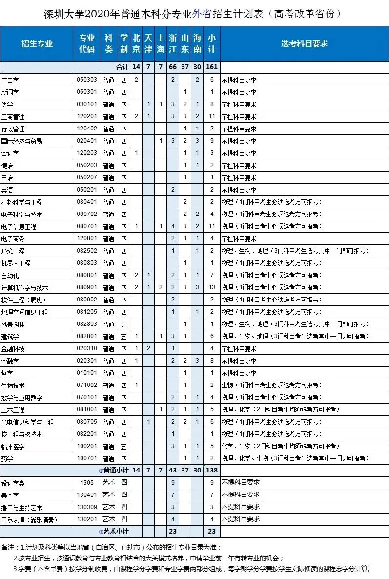 深圳大學(xué)2020年面向全國29個?。ㄗ灾螀^(qū)、直轄市)招生,招生總規(guī)模保持不變,總計劃為6750人。增加天津這1個招生省份;增加廣東省外招生計劃;增加金融科技、機(jī)器人工程、學(xué)前教育(師范)3個招生專業(yè);增加軟件工程(騰班)、心理學(xué)(師范)2個專業(yè)方向。