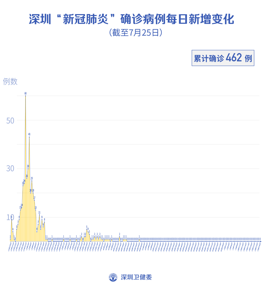 截至7月25日24時,深圳累計報告新冠肺炎病例462例。