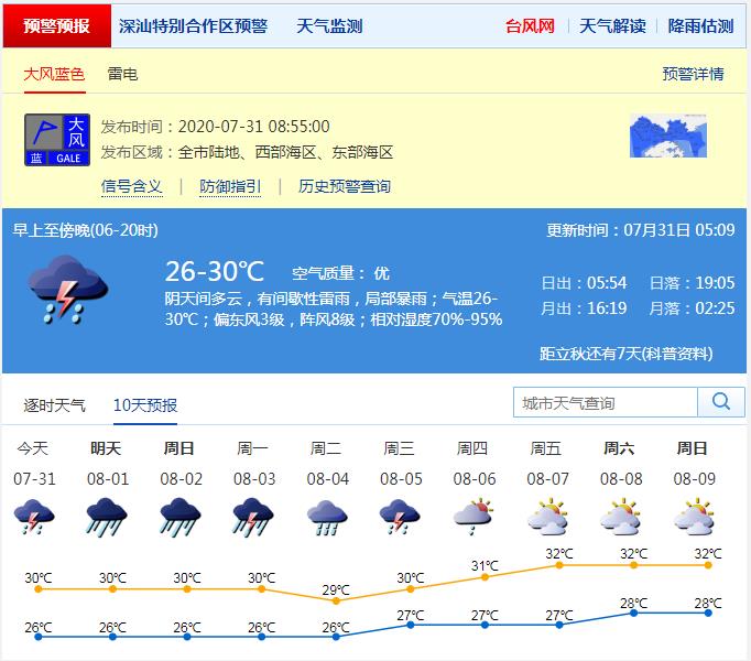 見圳客戶端·深圳新聞網(wǎng)2020年7月31日訊(記者 陳婕 施冰冰)連續(xù)一周暴雨,還有8級陣風(fēng)要來!上班族們,雨具、短褲和拖鞋快通通備起來啦!記者從市氣象局了解到,深圳31日受偏東氣流影響,有間歇性雷陣雨,雨量可達(dá)大雨,南部地區(qū)暴雨,雨時伴有8級左右短時陣風(fēng),高溫天氣緩解;1-4日受熱帶低壓和季風(fēng)共同影響,深圳有暴雨局部大暴雨,沿海、高地和海區(qū)最大陣風(fēng)8級左右;深汕有大暴雨局部特大暴雨,陣風(fēng)8-10級。