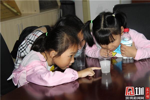 30位社區(qū)青少年年紀(jì)最小的6歲,最大的12歲,有的是跟家長一起,有的是兄弟姐妹一起來,他們認(rèn)真聽課,積極參與實驗,眼看著普普通通的自來水,加入一種化工原料,就從液體變成了顆粒狀,霏霏小朋友張大了嘴巴驚呼:“好神奇?。 痹诶蠋煹闹v解下,他們知道了其中的原理,同時也學(xué)會了尋找身邊生活中的科學(xué)現(xiàn)象,用化學(xué)的視角理解身邊的問題。