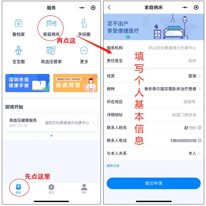 點擊【服務】-【家庭病床】-填寫基本信息。