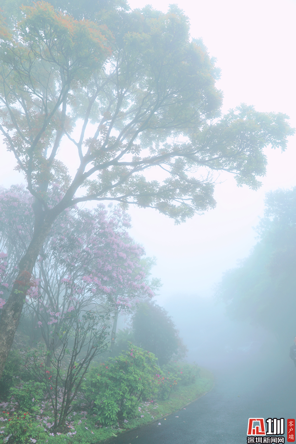 大霧彌漫,也止不住梧桐花路的美,朦朧之間,也賞到了毛棉杜鵑的另一番韻味。