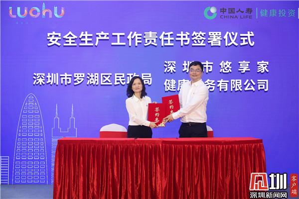 在開業(yè)儀式上,羅湖區(qū)民政局與國壽·悠享家健康護(hù)老中心簽訂了安全生產(chǎn)、消防工作責(zé)任書,為保障入住長者安全、關(guān)注長者需求層層壓實(shí)安全責(zé)任。