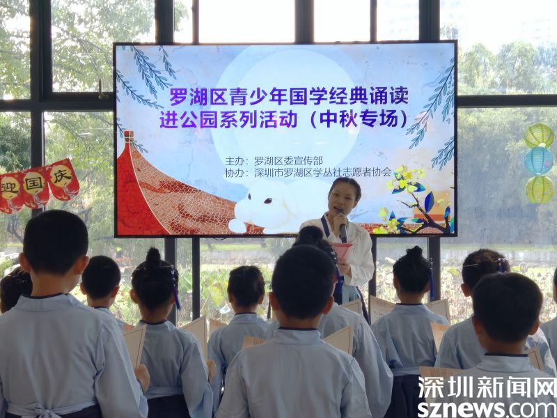 讀特客戶端·深圳新聞網(wǎng)2021年9月20日訊(記者 劉晨 通訊員 陽軍)9月20日,由羅湖區(qū)委宣傳部主辦、羅湖區(qū)學(xué)叢社志愿者協(xié)會(huì)承辦的“羅湖區(qū)青少年國學(xué)經(jīng)典誦讀進(jìn)公園”首場活動(dòng),在洪湖公園拉開帷幕。作為羅湖區(qū)委關(guān)愛轄區(qū)青少年系列活動(dòng)之一的經(jīng)典誦讀進(jìn)公園活動(dòng),首場通過招募羅湖轄區(qū)對國學(xué)經(jīng)典誦讀感興趣的青少年朋友參加,在洪湖公園,邀請僑香實(shí)驗(yàn)學(xué)校的領(lǐng)誦教師現(xiàn)場指導(dǎo)誦讀,來引領(lǐng)轄區(qū)居民特別是青少年朋友參與其中,感受國文經(jīng)典誦讀的文化魅力,培養(yǎng)青少年的傳統(tǒng)觀念,弘揚(yáng)中華優(yōu)秀傳統(tǒng)文化,增強(qiáng)民族自信心、自尊心和自豪感。