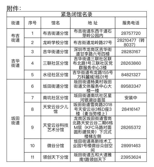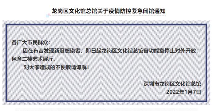 1月7日,深圳市龍崗區(qū)圖書(shū)館發(fā)布通知稱,因疫情防控工作需要,為保障市民讀者健康安全,經(jīng)研究決定,區(qū)圖書(shū)館在布吉、坂田和吉華三個(gè)街道的所有分館,自2022年1月7日起臨時(shí)閉館,暫停到館讀者服務(wù)和各項(xiàng)活動(dòng),進(jìn)行衛(wèi)生消殺、內(nèi)務(wù)整理等,恢復(fù)開(kāi)館時(shí)間另行通知。