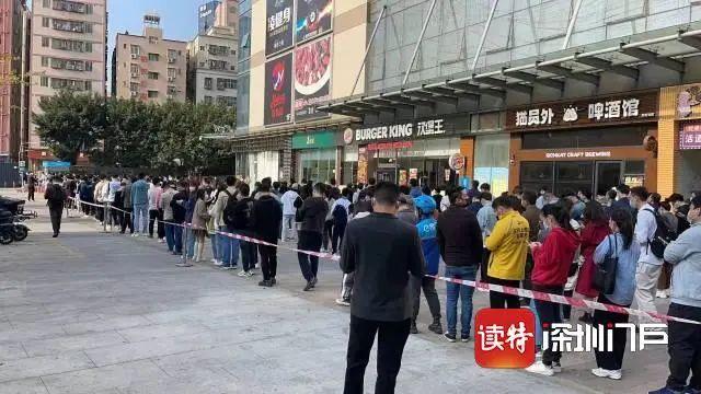 ▲坂田星河銀湖谷樓下也排起長(zhǎng)長(zhǎng)的核酸檢測(cè)隊(duì)伍,除了本地居民,人群里還有附近工地的建筑行業(yè)從業(yè)者、外賣小哥等。