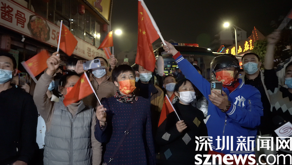 隨著“解封”時刻的臨近,現(xiàn)場氣氛高漲,封控區(qū)內“深圳加油”的口號與封控區(qū)外“《我和我的祖國》大合唱”愈發(fā)嘹亮。