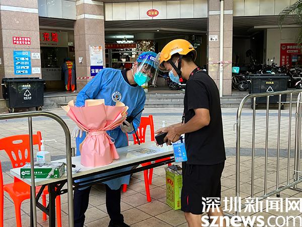讀特客戶端·深圳新聞網(wǎng)2022年9月4日訊(記者 邱婕)“你好,請開門,我們來做核酸采樣了。”9月4日上午,位于羅湖區(qū)筍崗街道筍西社區(qū)的嘉寶田花園內(nèi),不斷響起核酸采樣小組工作人員的聲音。疫情當(dāng)前,筍西社區(qū)立刻進入“戰(zhàn)時狀態(tài)”,科學(xué)劃分戰(zhàn)線、細(xì)致部署工作、嚴(yán)格精準(zhǔn)管控居家隔離醫(yī)學(xué)觀察對象。據(jù)了解,嘉寶田花園居民有2075戶共5675人,為了更加高效、安全地開展工作,社區(qū)工作站劃分了35個小組,每組由一名醫(yī)護人員、一名安保人員和一名區(qū)下沉干部組成,三人成組完成上門核酸采樣工作。