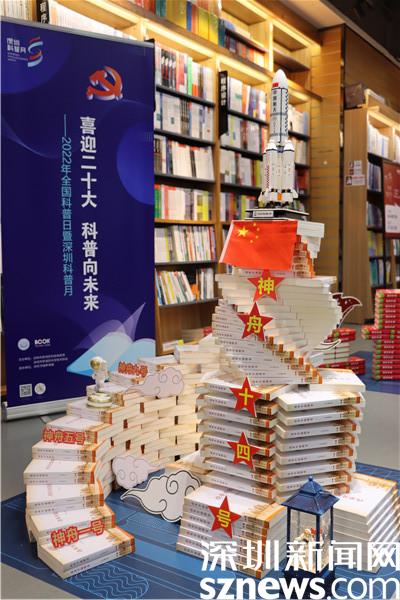 在科普月期間,羅湖書城在一樓“長盒子”空間,特別打造了“科創(chuàng)科普 兩翼齊飛”主題教育展。展覽圍繞“中國這十年科技創(chuàng)新交出亮眼成績單”“紀(jì)念科普法頒布20周年”兩大重要節(jié)點(diǎn),策劃了“科技創(chuàng)新”“科普法治”“互動(dòng)學(xué)習(xí)”三大內(nèi)容板塊,集中展示中國科技發(fā)展報(bào)告、《中華人民共和國科學(xué)技術(shù)普及法》《深圳經(jīng)濟(jì)特區(qū)科學(xué)技術(shù)普及條例》等內(nèi)容,圖文并茂地講述了中國科技發(fā)展成果和中國科普工作成果。