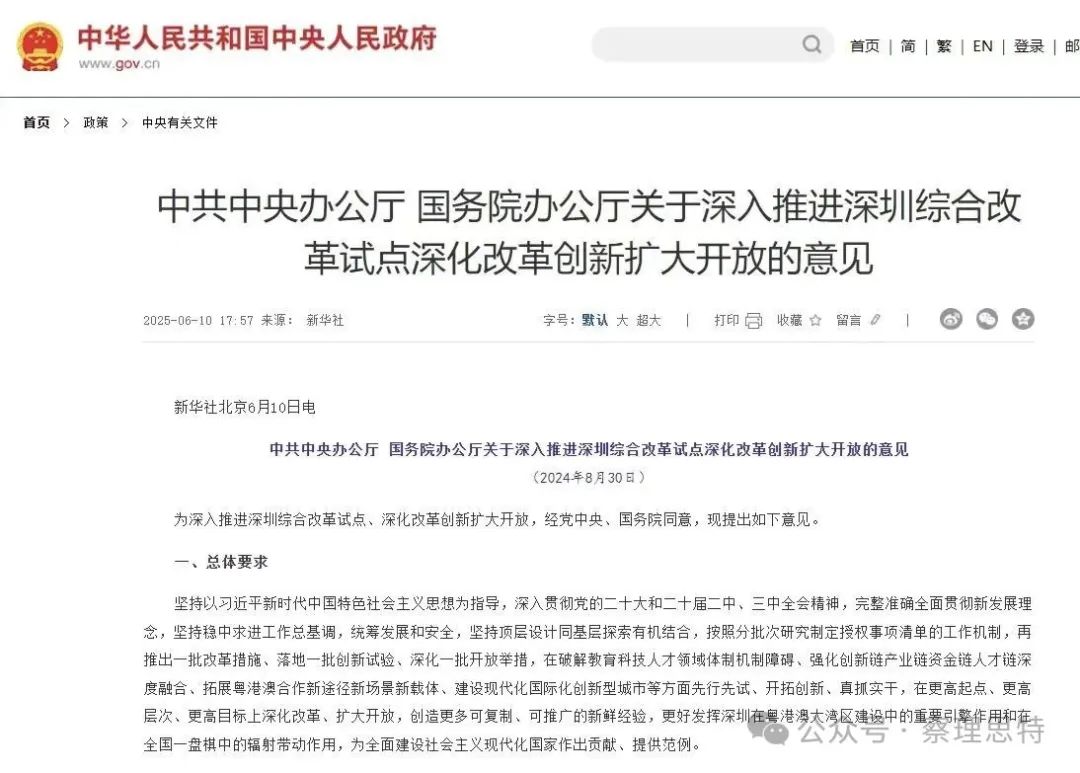 深圳的改革,是一部永不停歇的“進(jìn)行曲”。從經(jīng)濟(jì)特區(qū)到先行示范區(qū),再到綜合改革試點深化,深圳始終以“敢闖敢試、敢為人先”的精神,探索中國式現(xiàn)代化的新路徑。此次《意見》的印發(fā),不僅為深圳注入了新動能,更為全國改革提供了新范式。