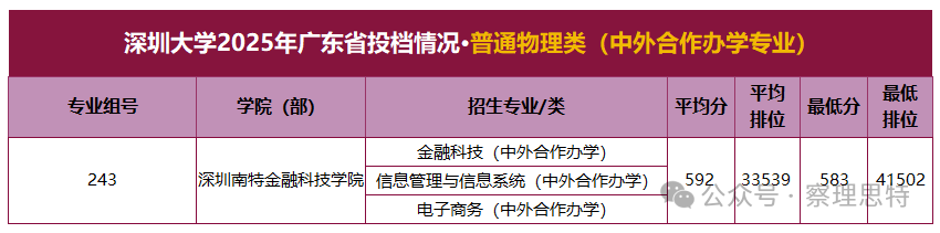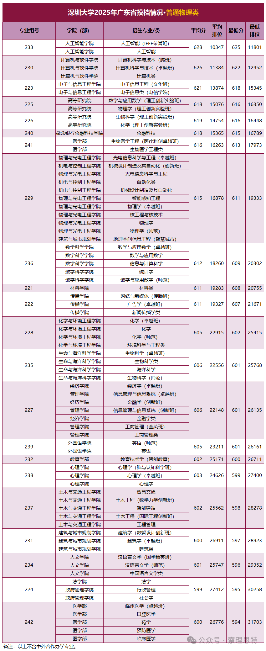 深圳大學2025年廣東省普通物理類投檔最低分為594分,排位31703;普通歷史類投檔最低分為592分,排位7271。作為深圳本土綜合性大學的代表,深圳大學在文理兩科均保持了穩(wěn)定的吸引力。