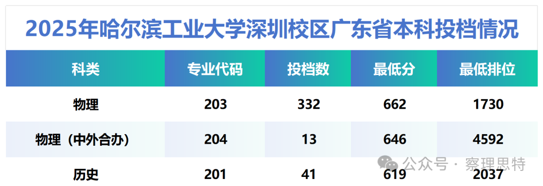 哈爾濱工業(yè)大學(深圳)在物理類投檔中表現(xiàn)尤為突出,以662分的投檔最低分和1730的全省最低排位位居深圳高校榜首,同時也是全省物理類投檔分數(shù)最高的院校。歷史類投檔最低分619分,排位為2037,展現(xiàn)了其文理均衡的強勁實力。