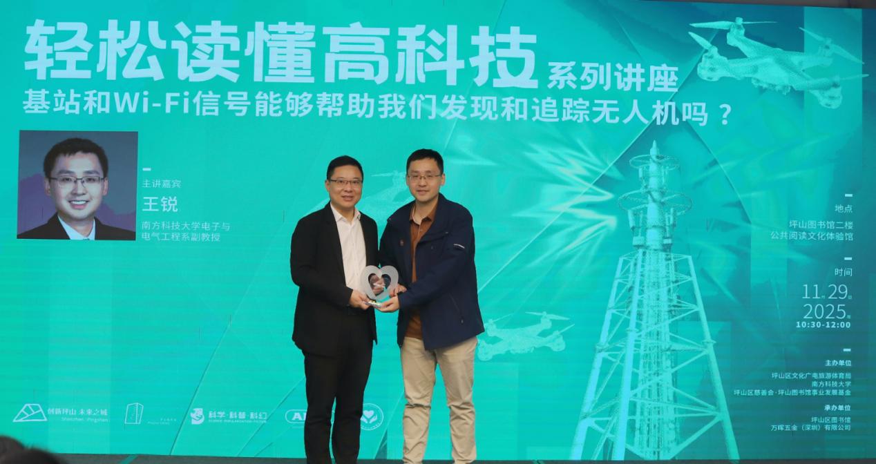 深圳新聞網(wǎng)2025年12月1日訊(記者 邱嘉熙)11月29日,2025“輕松讀懂高科技”系列講座第六場在深圳市坪山區(qū)圖書館火熱開啟。南方科技大學(xué)電子與電氣工程系副教授王銳以《基站和 Wi-Fi 信號能夠幫助我們發(fā)現(xiàn)和追蹤無人機(jī)嗎?》為題,用通俗易懂的案例、生動(dòng)形象的比喻與嚴(yán)謹(jǐn)?shù)膶W(xué)術(shù)邏輯,結(jié)合自身科研經(jīng)歷,帶市民解鎖無線電波的奧秘,感受科技賦能生活的奇妙。