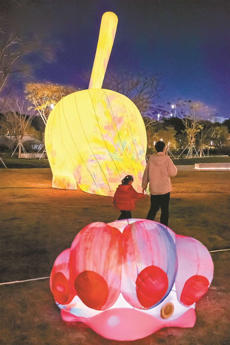 技術(shù)與藝術(shù)的融入,讓福田公共空間更具溫度。筆架山體育公園的夜間光影裝置,市民靠近即可觸發(fā)畫面變化,“晚上來的人比白天多,孩子覺得新鮮”;市民中心廣場的節(jié)慶燈光秀,聯(lián)動多建筑群亮燈,為城市增添儀式感。
