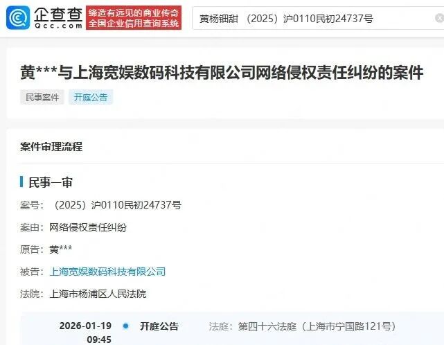 ● 近日,法院公開黃楊鈿甜起訴上海寬娛數(shù)碼科技有限公司網(wǎng)絡(luò)侵權(quán)責(zé)任糾紛的案件信息。