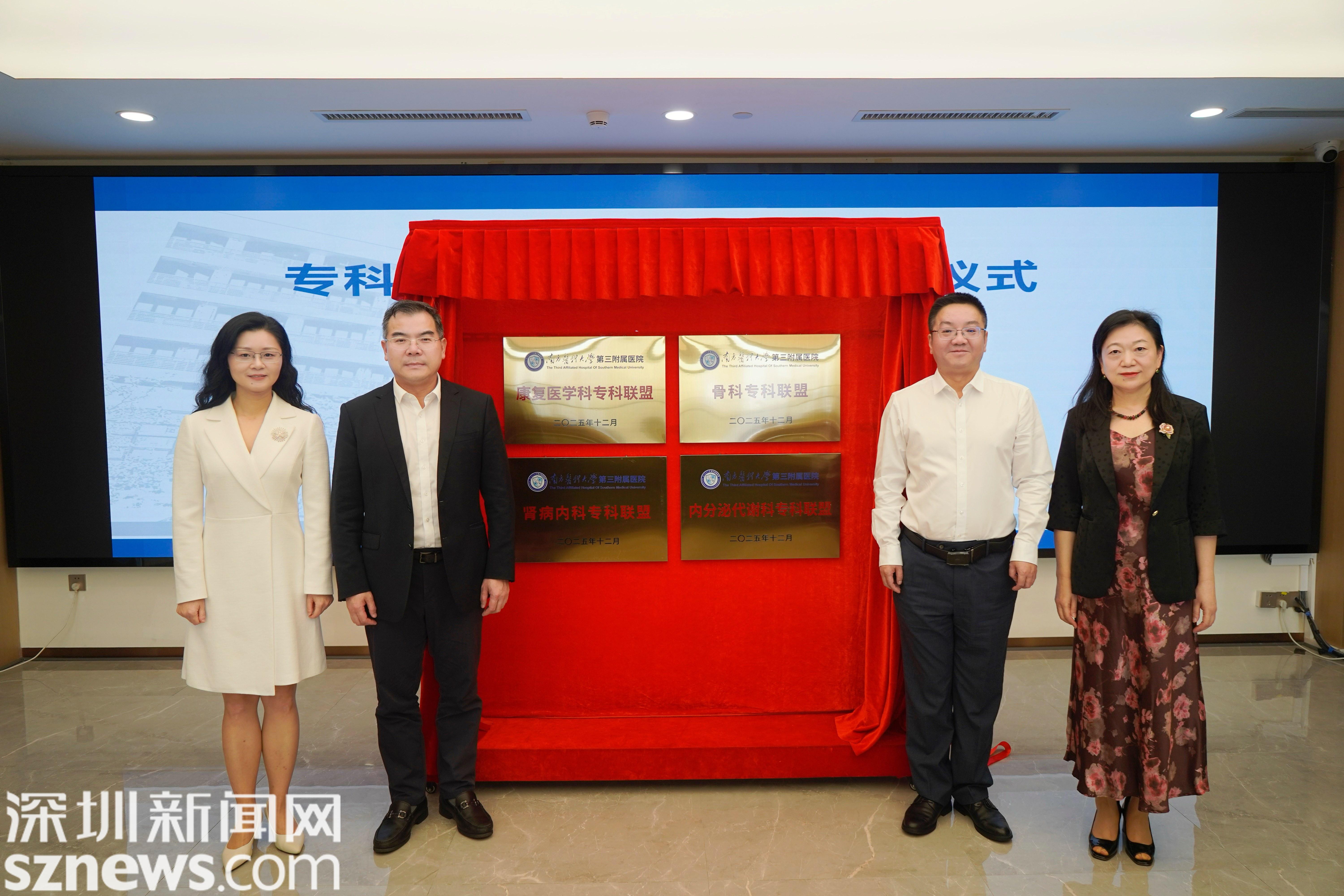 簽約結(jié)束,伴隨著紅綢揭下,四塊金色牌匾同時(shí)亮相——南醫(yī)三院“骨科專科聯(lián)盟”“康復(fù)醫(yī)學(xué)科專科聯(lián)盟”“腎病內(nèi)科??坡?lián)盟”“內(nèi)分泌代謝科??坡?lián)盟”正式落地,標(biāo)志著4個(gè)國(guó)家級(jí)/省級(jí)重點(diǎn)??频募夹g(shù)團(tuán)隊(duì)及同質(zhì)化管理標(biāo)準(zhǔn)落地福田。