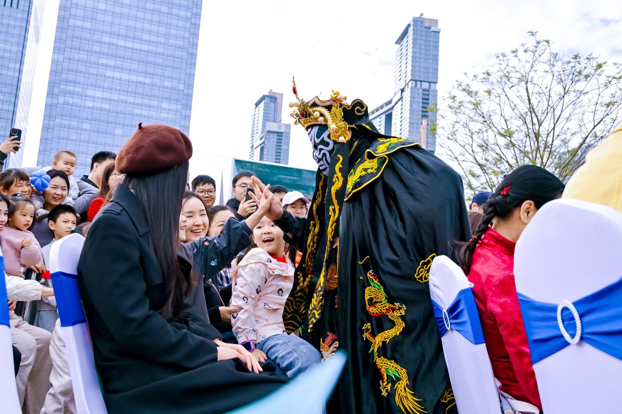 作為“綻放”市民藝術(shù)季“街區(qū)盲盒劇場(chǎng)”的首場(chǎng)重磅演出,當(dāng)天的活動(dòng)聯(lián)合華富街道共同主辦,融入華富街道首屆戲劇“森活”嘉年華,活動(dòng)特別邀請(qǐng)到國(guó)家京劇院一級(jí)演員、北京京劇院二級(jí)演員,同時(shí)還帶來(lái)烏鎮(zhèn)戲劇節(jié)同款木偶劇?,F(xiàn)場(chǎng)打破了傳統(tǒng)觀演與觀眾的邊界,市民穿梭其間實(shí)現(xiàn)“沉浸式時(shí)空穿越”?!抖ㄜ娚健费輪T高亢的唱腔贏得滿堂彩;《太真外傳》選段帶領(lǐng)觀眾夢(mèng)回大唐;《狀元媒》中展現(xiàn)的細(xì)膩婉約,讓觀眾領(lǐng)略到中國(guó)戲曲的另一種美學(xué)境界……此外,特別設(shè)置的互動(dòng)節(jié)目《孫悟空》與《變臉》,以詼諧的演繹與奇幻的技法,引來(lái)人群中陣陣驚嘆與掌聲,進(jìn)一步拉近了傳統(tǒng)藝術(shù)與觀眾的距離。核心創(chuàng)新“盲盒劇場(chǎng)”將懸念與互動(dòng)貫穿全程——巨型盲盒啟動(dòng)儀式拉開(kāi)序幕,現(xiàn)場(chǎng)演出選段由市民投票決定,真正實(shí)現(xiàn)“觀眾主導(dǎo)藝術(shù)內(nèi)容”。