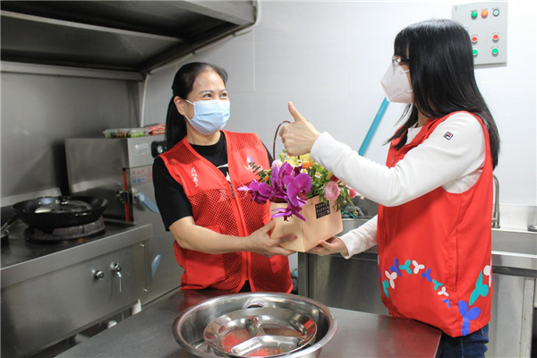 3月8日,是國際婦女節(jié),所有堅守在羅湖區(qū)桂園街道老圍社區(qū)抗疫一線的女性社區(qū)工作者、下沉人員、志愿者和醫(yī)務(wù)人員都收到了一個精美的小花籃,花籃里百合、玫瑰、蘭花等悠然綻放,芳香四溢,鼓舞了滿員士氣。