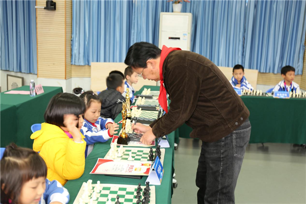 12月27日下午,2021年國際象棋特級大師葉江川走進深圳小學,與16名小棋手進行了一場別開生面的車輪戰(zhàn)。
