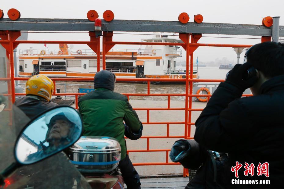 1月31日晚,上海輪渡東嫩線上運營的最后一條非空調(diào)普通輪渡結束了運營,至此,上海市輪渡公司所屬黃浦江上17條輪渡航線實現(xiàn)了空調(diào)輪渡全覆蓋,上海民眾最為熟悉的“橙色系”輪渡全部退出歷史舞臺。圖為民眾乘坐最后一條非空調(diào)普通輪渡擺渡過江。中新社記者 殷立勤 攝