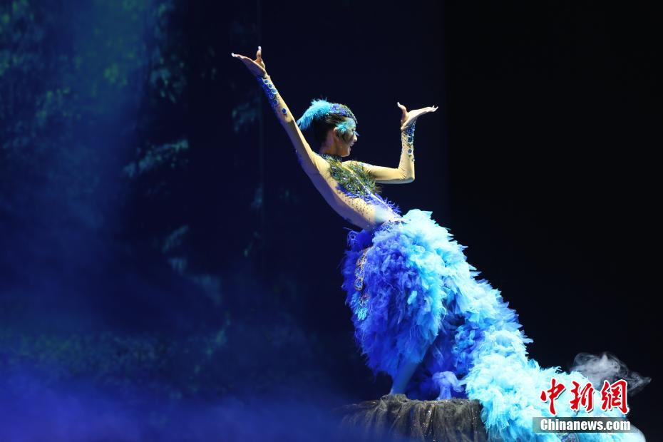 當?shù)貢r間2月25日晚,2018年“文化中國·四海同春”藝術團在美國南部城市休斯敦舉行慰僑綜藝晚會。圖為休斯敦華星藝術團13歲演員表演舞蹈《孔雀》。休斯敦是2018年“文化中國·四海同春”藝術團赴美演出的首站,獲得休斯敦華人華僑的熱情回應。其后,該藝術團還將奔赴美國奧蘭多、舊金山、芝加哥演出。中新社記者曾靜寧 攝