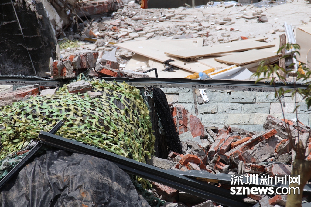 深圳新聞網(wǎng)記者正在操作無(wú)人機(jī)對(duì)羊臺(tái)山兩棟拆除后的違法建筑廢墟進(jìn)行拍攝